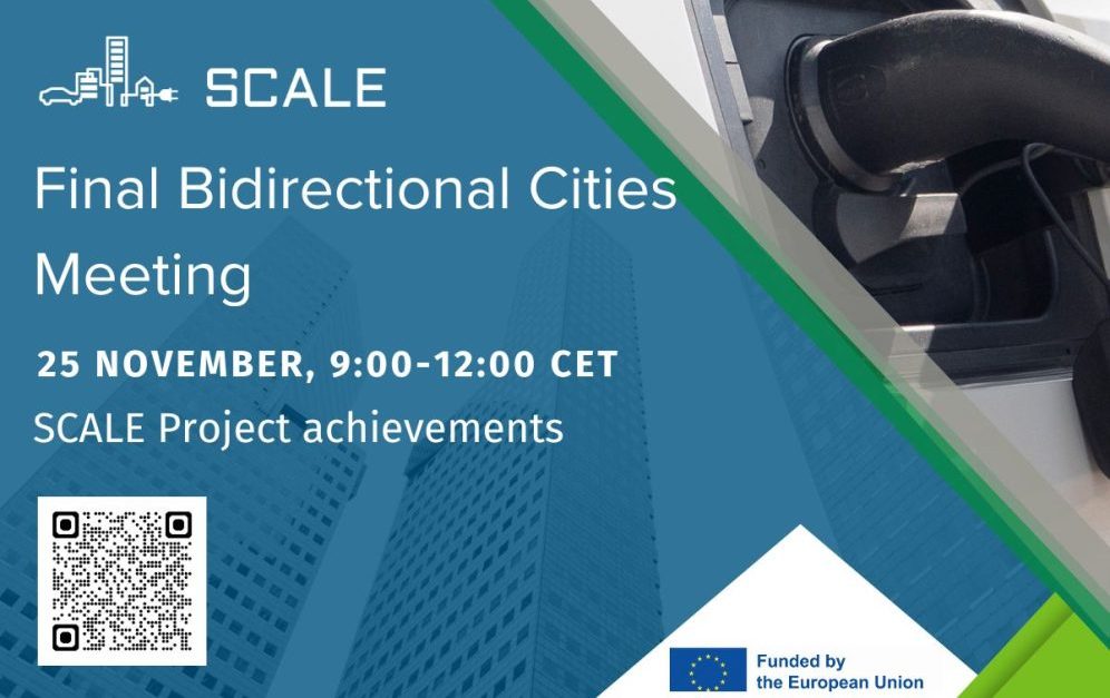 On November 25, 2025, from 9:00 to 12:00, we are pleased to invite cities, regions, and local grid operators to join us in Utrecht for the 5th and final Bidirectional Cities Event focused showcasing some of the project’s achievements including the SCALE procurement guidelines for smart and bidirectional EV charging infrastructure and the SCALE Blueprint. This is also an opportunity for participants to share the needs and requirements from their own contexts, as well as to provide input and validation to our project outcomes.